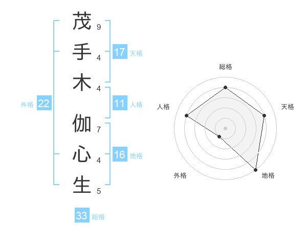 茂手木 伽心生さんを姓名の画数から五運を鑑定