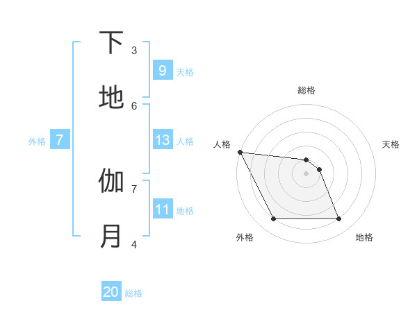 下地 伽月さんの総格は20画の1点!