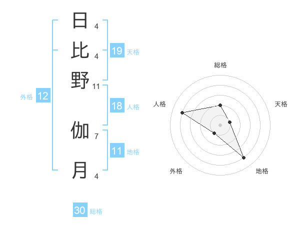 日比野 伽月さんを姓名の画数から五運を鑑定
