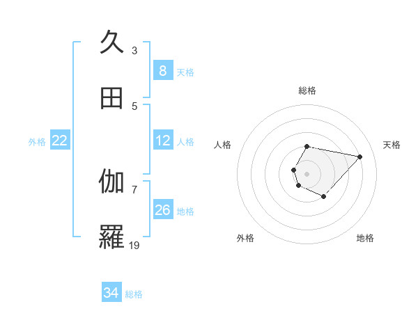久田 伽羅さんを姓名の画数から五運を鑑定