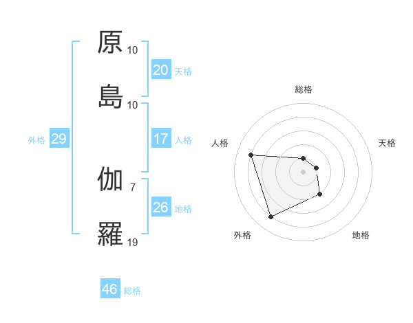 原島 伽羅さんを姓名の画数から五運を鑑定