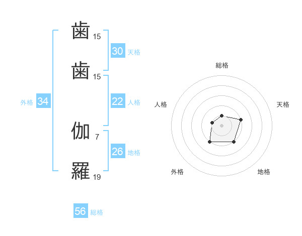 歯歯 伽羅さんを姓名の画数から五運を鑑定