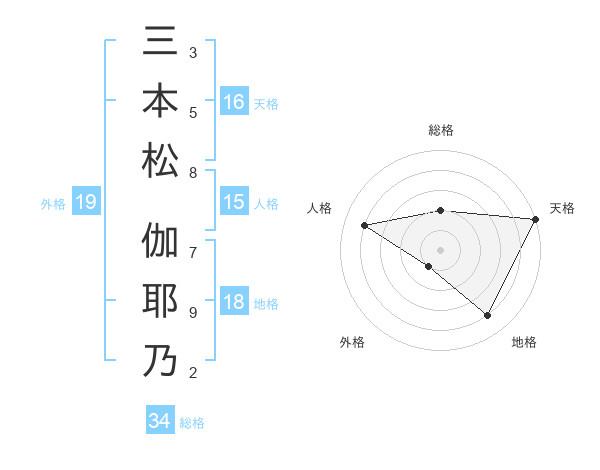 三本松 伽耶乃さんを姓名の画数から五運を鑑定