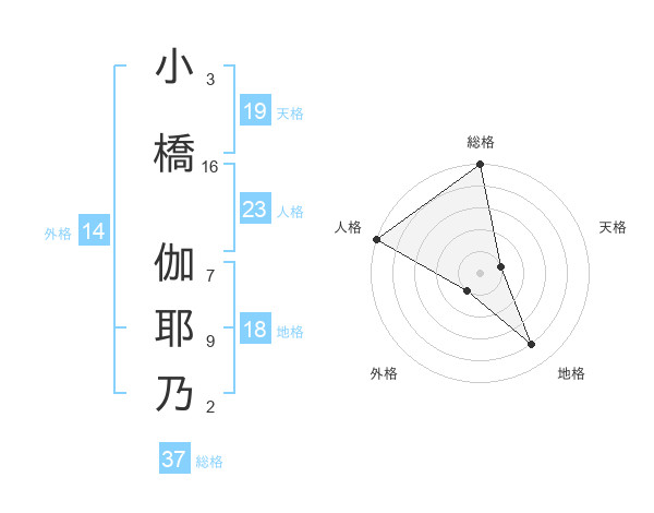 小橋 伽耶乃さんを姓名の画数から五運を鑑定