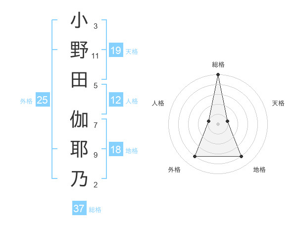小野田 伽耶乃さんを姓名の画数から五運を鑑定