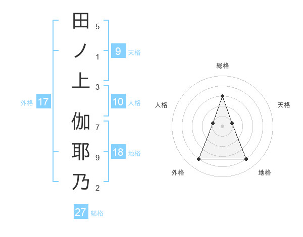 田ノ上 伽耶乃さんの総格は27画の3点!