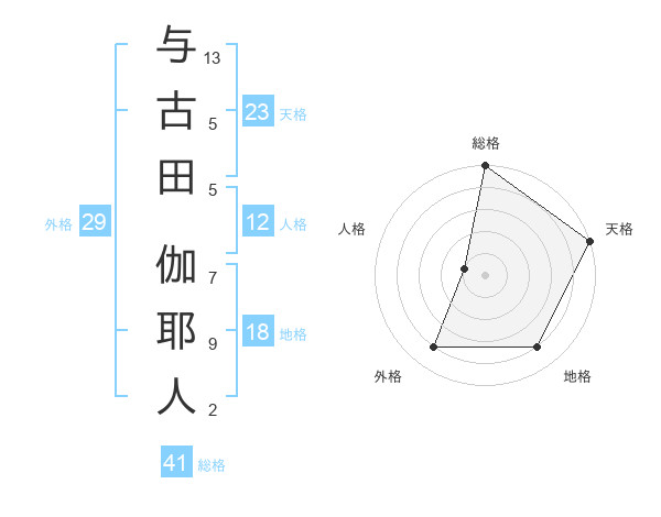 与古田 伽耶人さんを姓名の画数から五運を鑑定