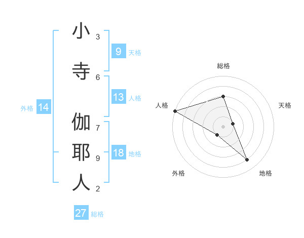 小寺 伽耶人さんを姓名の画数から五運を鑑定