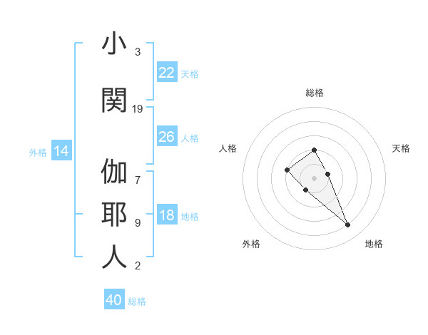 小関 伽耶人さんを姓名の画数から五運を鑑定
