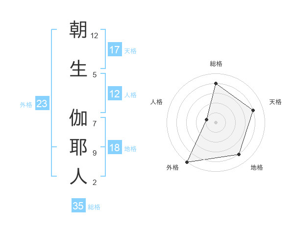朝生 伽耶人さんを姓名の画数から五運を鑑定