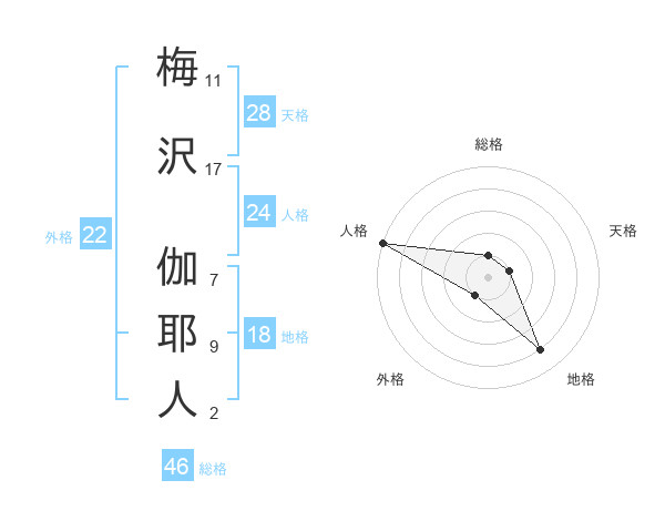 梅沢 伽耶人さんを姓名の画数から五運を鑑定