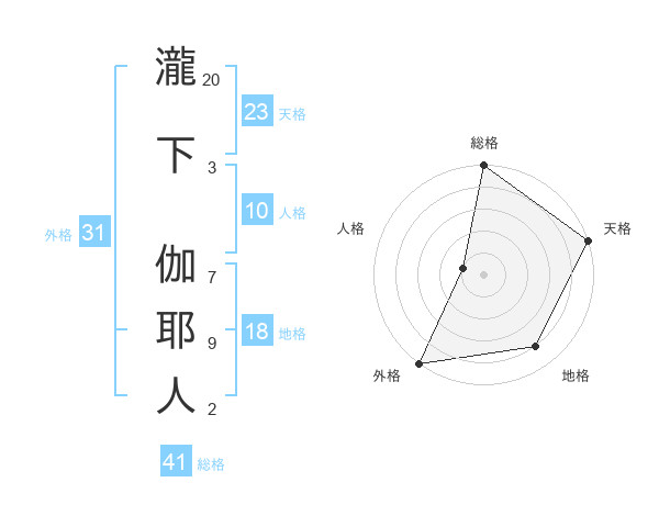 瀧下 伽耶人さんを姓名の画数から五運を鑑定