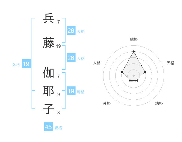 兵藤 伽耶子さんの外格は19画の1点