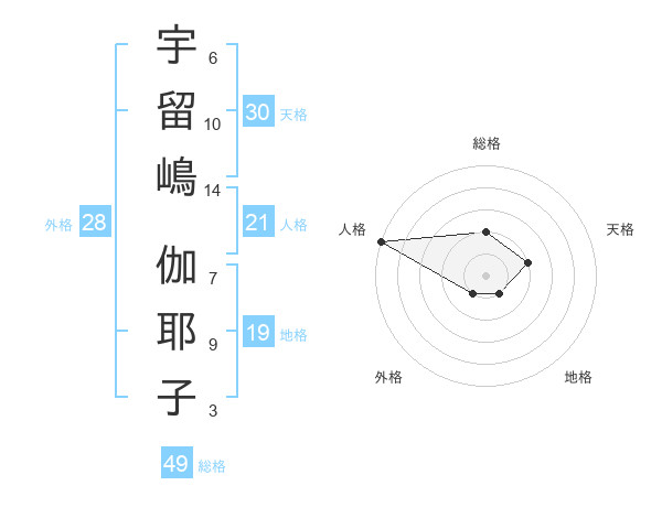 宇留嶋 伽耶子さんを姓名の画数から五運を鑑定