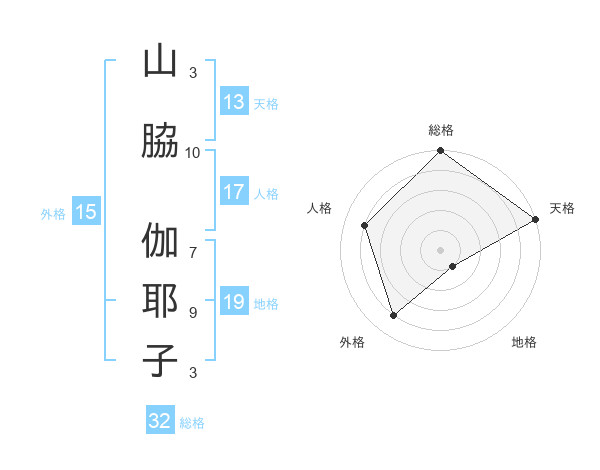 山脇 伽耶子さんを姓名の画数から五運を鑑定