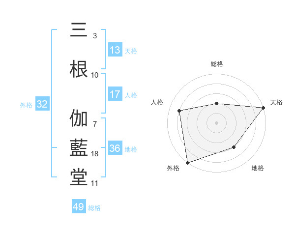 三根 伽藍堂さんを姓名の画数から五運を鑑定