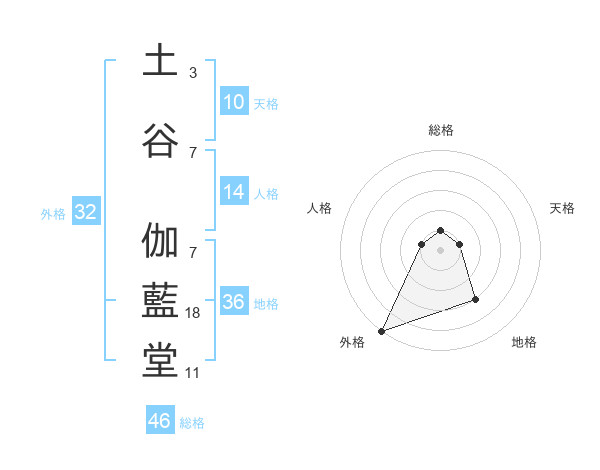 土谷 伽藍堂さんを姓名の画数から五運を鑑定