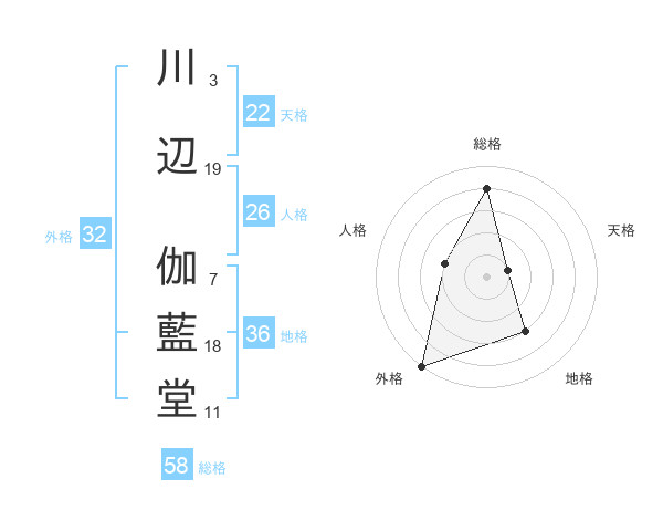 川辺 伽藍堂さんを姓名の画数から五運を鑑定