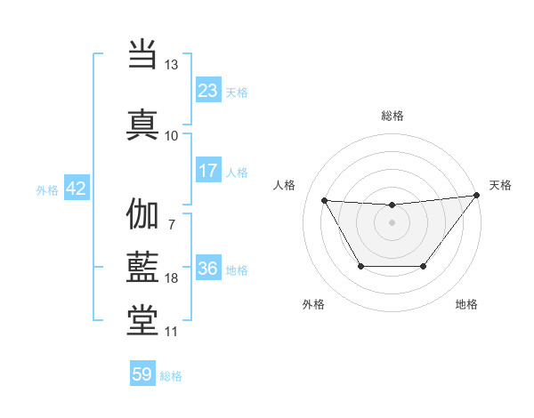 当真 伽藍堂さんを姓名の画数から五運を鑑定