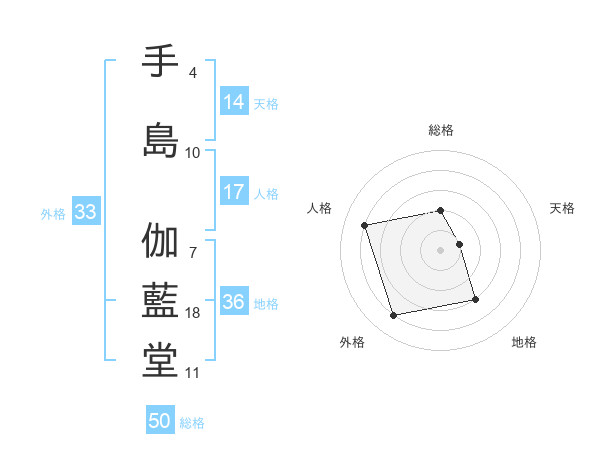 手島 伽藍堂さんの総格は50画の2点!