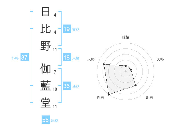 日比野 伽藍堂さんを姓名の画数から五運を鑑定