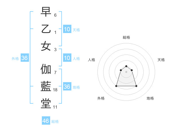 早乙女 伽藍堂さんを姓名の画数から五運を鑑定