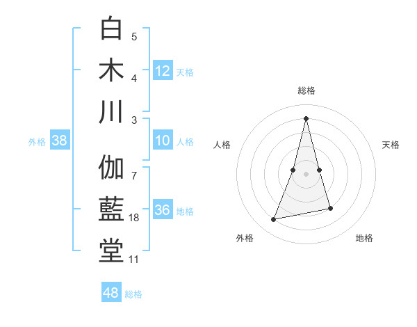 白木川 伽藍堂さんの総格は48画の4点