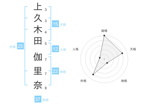 上久木田 伽里奈さんを姓名の画数から五運を鑑定