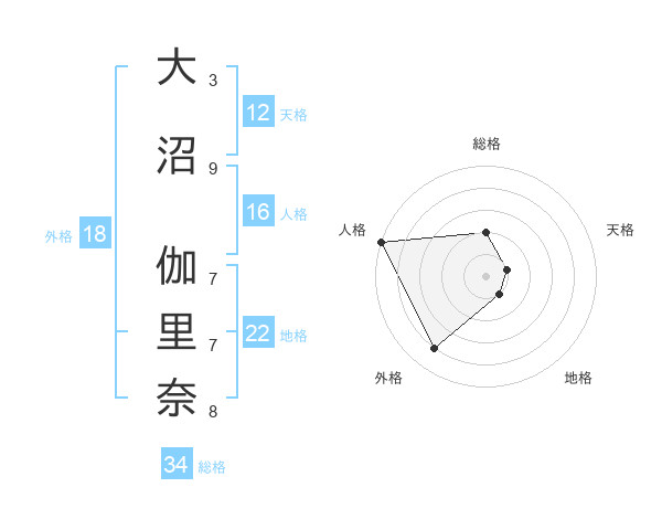 大沼 伽里奈さんの天格は12画の1点!
