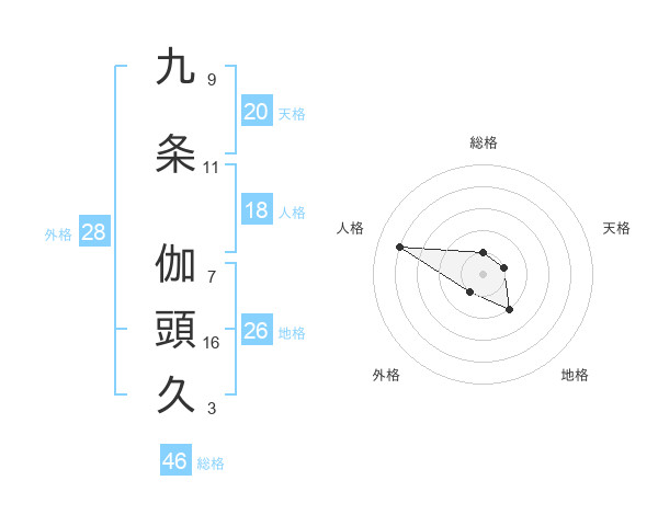九条 伽頭久さんを姓名の画数から五運を鑑定