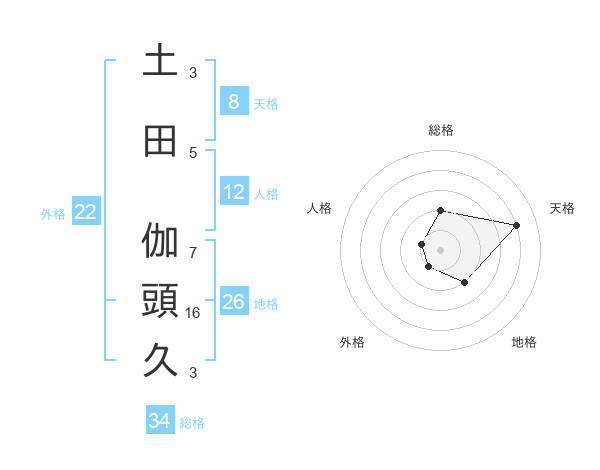 土田 伽頭久さんを姓名の画数から五運を鑑定