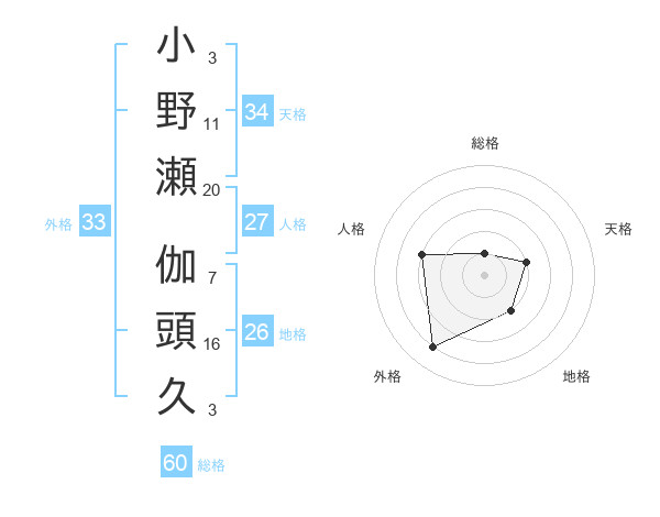 小野瀬 伽頭久さんを姓名の画数から五運を鑑定