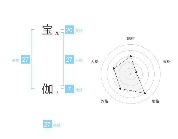 宝 伽さんの外格は27画の3点!