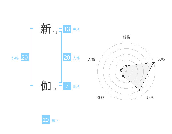 新 伽さんの総格は20画の1点!