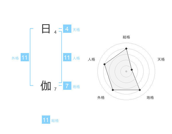 日 伽さんの総格は11画の4点!