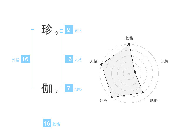 珍 伽さんの外格は16画の5点!