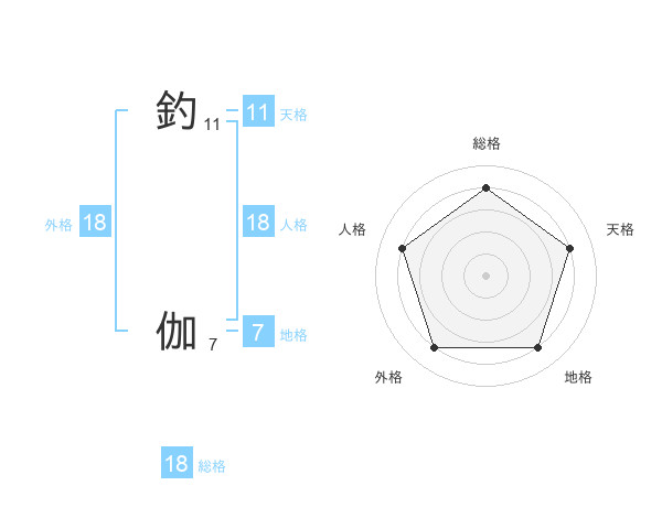 釣 伽さんの総格は18画の4点!