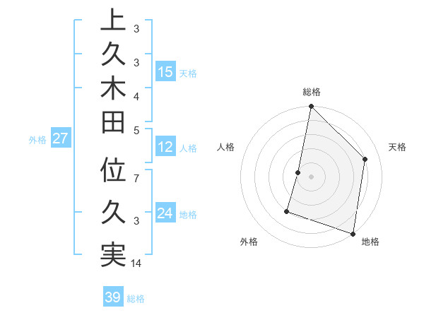 上久木田 位久実さんを姓名の画数から五運を鑑定