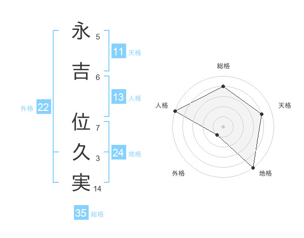 永吉 位久実さんを姓名の画数から五運を鑑定