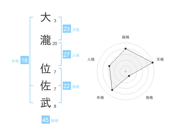 大瀧 位佐武さんを姓名の画数から五運を鑑定