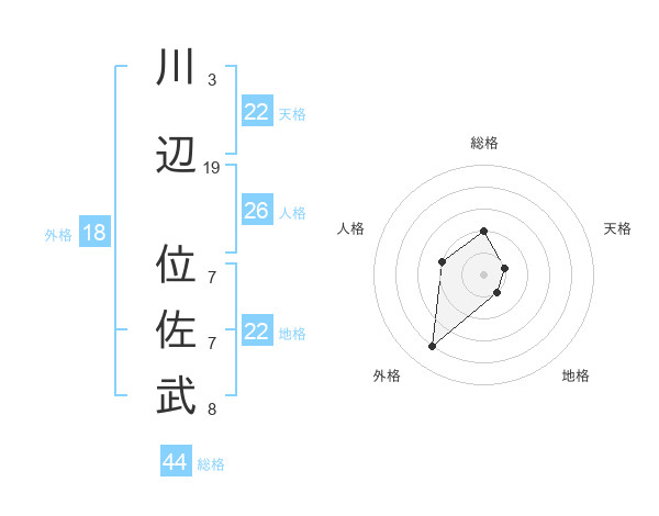 川辺 位佐武さんを姓名の画数から五運を鑑定