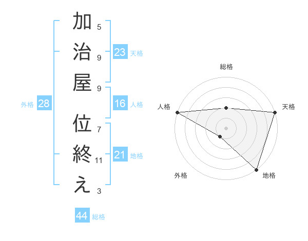 加治屋 位終えさんを姓名の画数から五運を鑑定