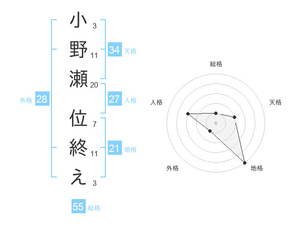 小野瀬 位終えさんの総格は55画の1点!