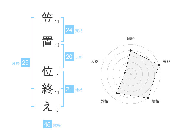 笠置 位終えさんの総格は45画の4点!