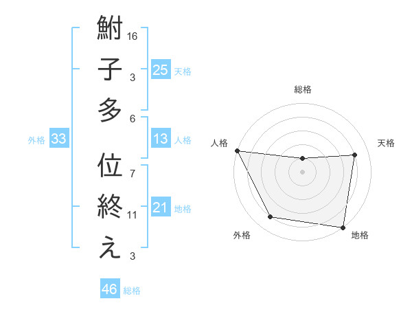 鮒子多 位終えさんを姓名の画数から五運を鑑定