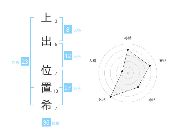 占い結果は姓名判断である以上、良い場合も悪い場合もありますが、決してお名前を誹謗中傷するものでなく、画数の自動計算によって得られたものです。また、本サイトの検索によって得られた鑑定結果で、第三者を誹謗中傷したり名誉を棄損するような行為を禁じます。