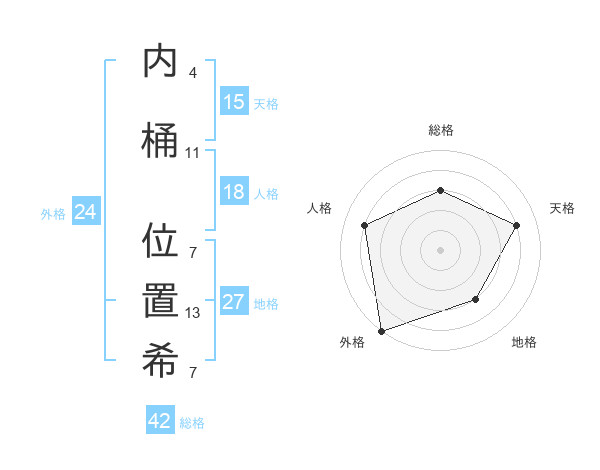 内桶 位置希さんを姓名の画数から五運を鑑定