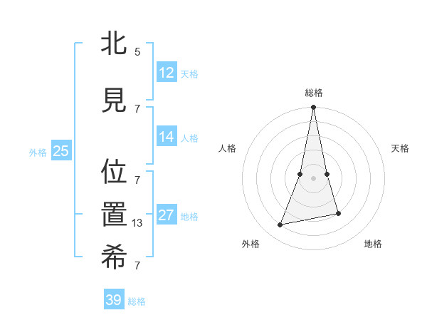 北見 位置希さんの総格は39画の5点!