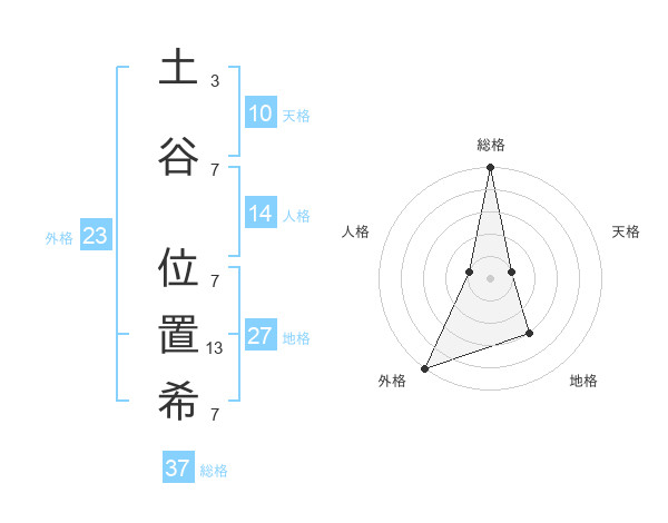 土谷 位置希さんを姓名の画数から五運を鑑定