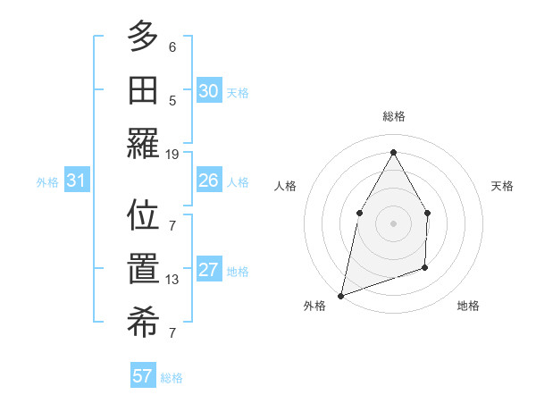 多田羅 位置希さんを姓名の画数から五運を鑑定